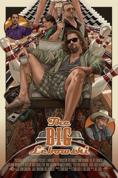 First you’ll need to find an appropriate glass. A straight short tumbler. Put ice in it. Eyeball measure one part Kahlua to one part vodka, then pour in two parts light cream (milk is also suitable). Stir. You now have a White Russian. Every time The Dude makes himself a White Russian, make yourself one too. If you are watching with friends, ensure that they do the same.